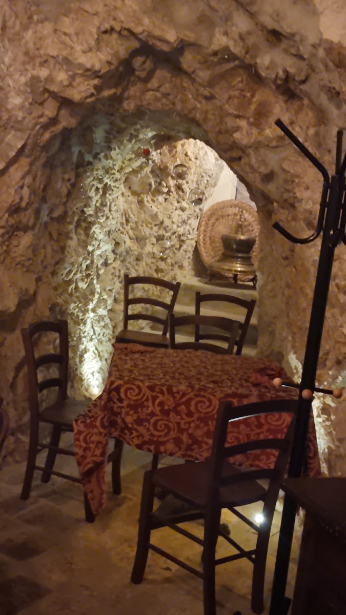 Locale strepitoso arroccato panorama mozzafiato Scolpito nella pietra....pizzeria ristorante albergo spa non manca nulla servizio impeccabile dove il maitre Angelo é affidabile cordiale sia con gli ospiti che con i suoi sottoposti che sono preparati e gentilissimi....soprattutto Francesca.....abbiamo fatto un aperitivo super abbondante....super consigliatissimo...